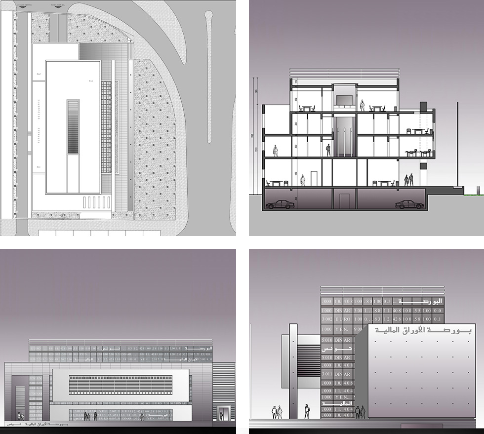 Le projet se distingue par sa sobriété et sa pureté ,jouant sur les contrastes de la matière et de la lumière, du transparent et de l’opaque , il se propose d’ê t r e moderne et innovant tout en s‘inspirant de l’architecture arabo - musulmane.