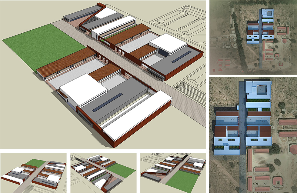 L’extension de l’université de Ziguinchor s’inscrit dans une logique de cohérence entre une étude judicieuse du programme liée à une demande spécifique et un budget bien précis d’une part, et d’une implantation ainsi qu’une intégration dans la continuité des bâtiments existants, tant sur la plan de l’aspect architectural que du fonctionnement général de l’ensemble du projet d’autre part. L’implantation qui découle essentiellement d’un plan directeur a été pensée de manière à s’adapter à un flux d’étudiants conséquent, c’est pour cette raison que deux grands dégagements ont été prévus dans la continuité de celui qui existe au niveau du bloc hébergement, ces dégagements se trouvent devant les amphithéâtres de 150 places et permettent donc une gestion adéquate de flux D’une manière intrinsèque chaque bloc UFR ou CRI a été pensé en fonction d’une orientation Nord/Sud pour éviter l’ensoleillement direct avec des galeries de circulation placées coté Sud dans la plupart des cas pour créer un brise soleil Chaque bloc bénéficie d’un accès différencié avec une signalétique mise en évidence à partir de l’axe principal du projet. Cette différenciation est appuyé par des patios plantés sorte d’écrans végétalisés, l’ensemble des blocs forme un tout harmonieux et cohérent qui allie modernité et pérennité Une alternance de toitures légères inclinées et des toitures plates s’inscrit également dans une continuité de l’ensemble du projet Chaque amphithéâtre ou laboratoire ou encore salle de TP à été étudié de manière à accueillir le nombre d’étudiant nécessaire dans un aménagement spécifique à la fonction de l’espace